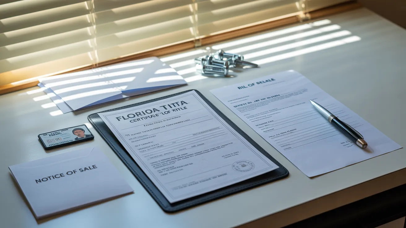 - Documentation meeting Florida requirements: title and ID checked, liens cleared and processed, sales bill generated, registration plates taken off, and Notice of Sale advised.